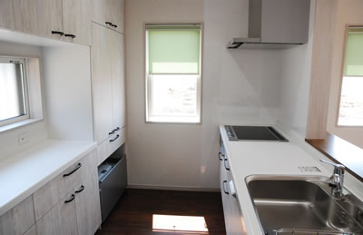 IHクッキングヒーターの収納たっぷりのキッチンです